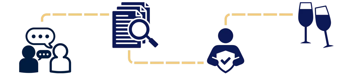 Una vez recibimos toda tu documentación (nombre/logo, poder de representación legal y certificado de Cámara de Comercio o cédula), iniciamos el cronómetro.