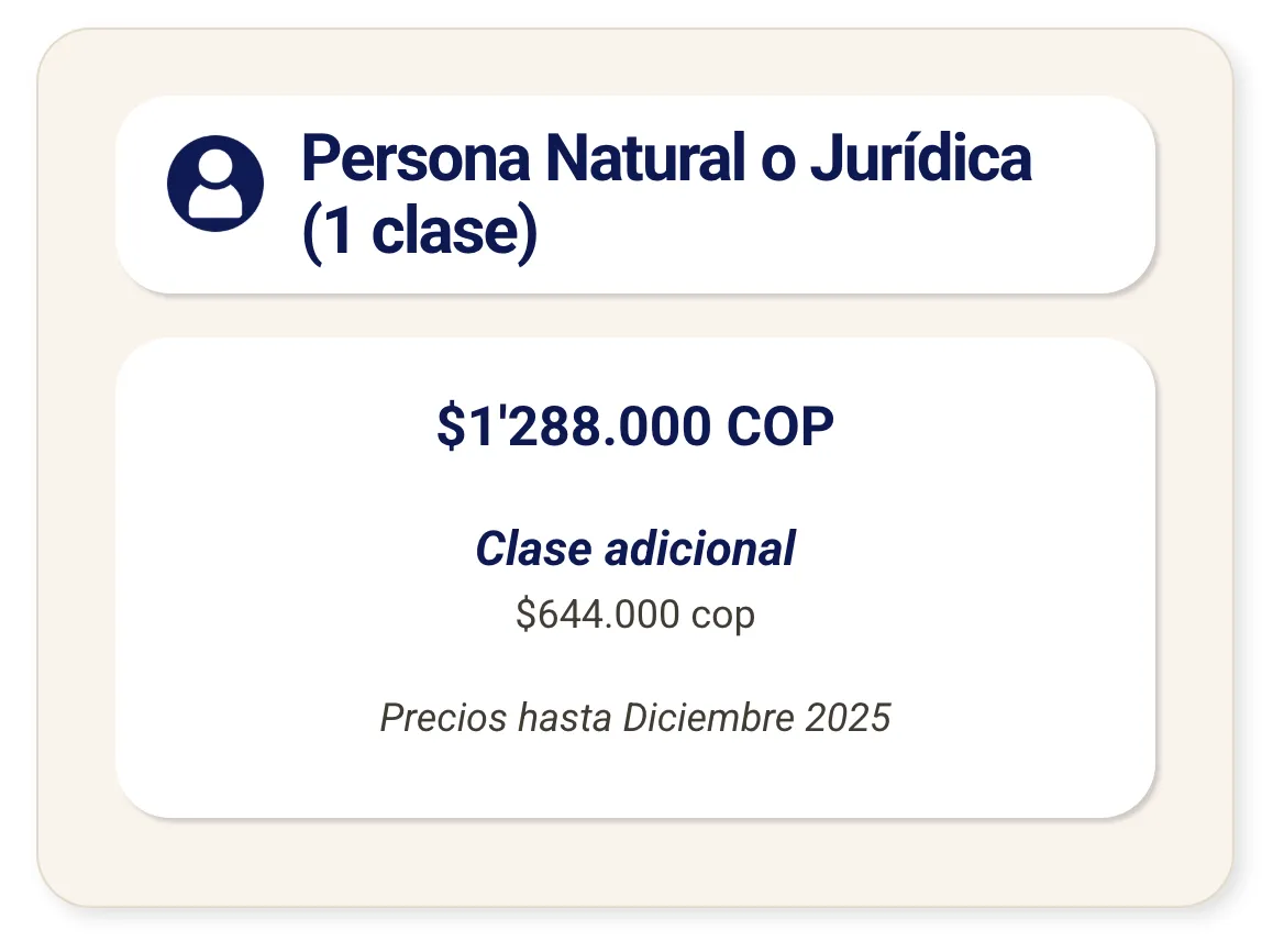 Es importante aclarar que estas tasas son pagos directos a la SIC y van separados de nuestros honorarios profesionales. La mayoría de nuestros clientes califican para el descuento PYME, lo que representa un ahorro significativo en el proceso de registro. Conoce más en Tasas SIC