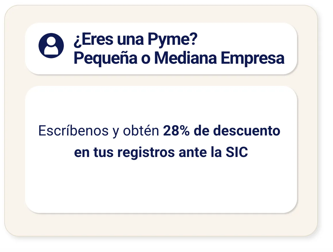 Escríbenos y obtén 28% de descuento en tus registros ante la SIC
